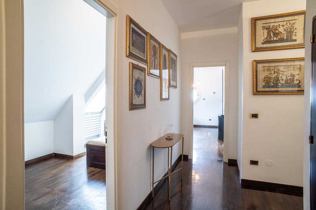 L’abitazione principale, posta al terzo piano, si sviluppa su una superficie di circa 150 mq ed è caratterizzata da ambienti ampi, luminosi e perfettamente distribuiti, impreziositi da finiture di livello superiore e da un progetto architettonico ricercato.