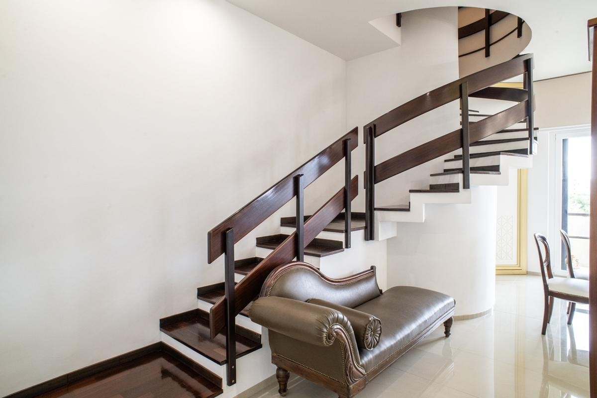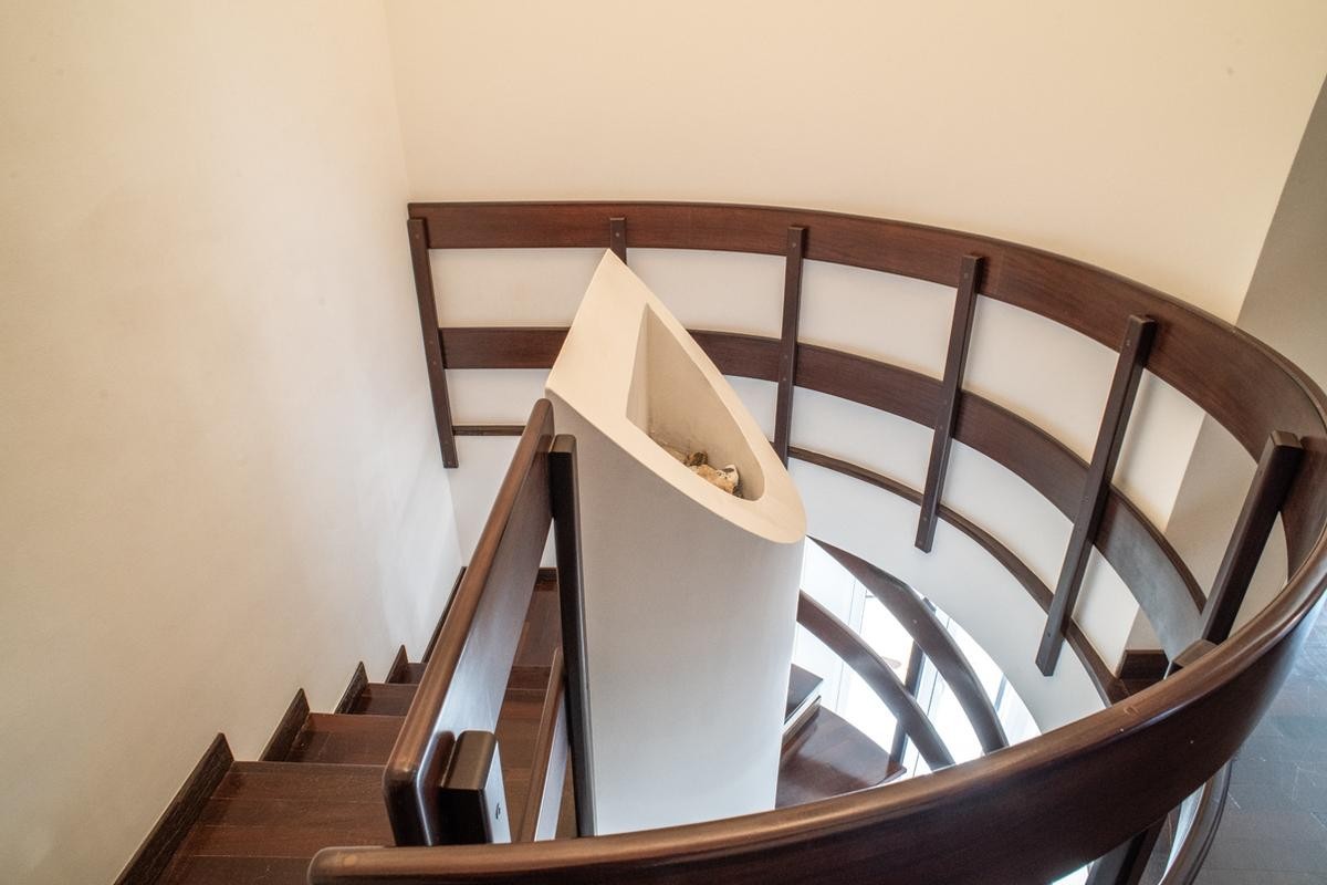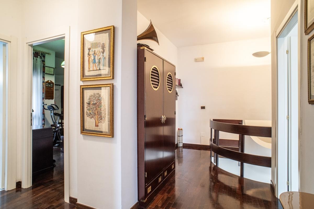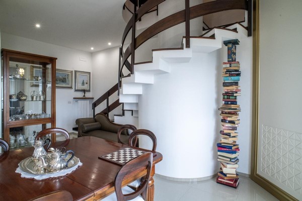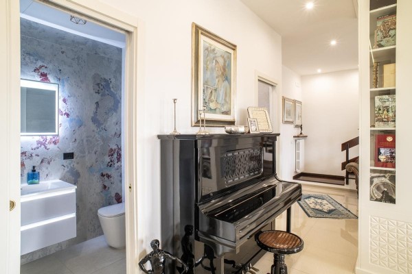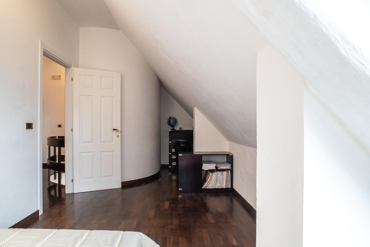 Elemento distintivo dell’abitazione è la scala interna in legno, dal forte impatto scenografico, che collega il piano principale alla mansarda abitabile di circa 125 mq.