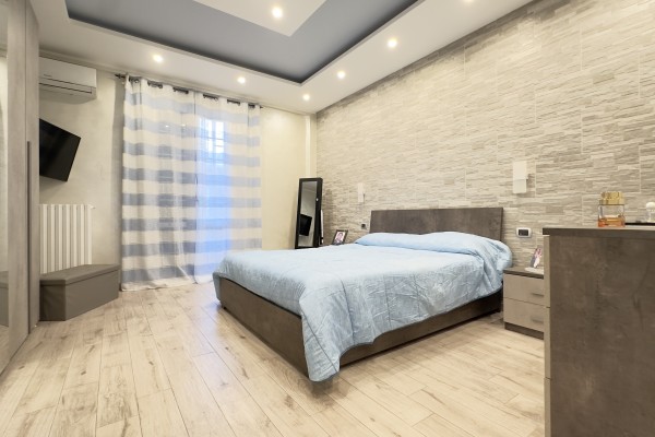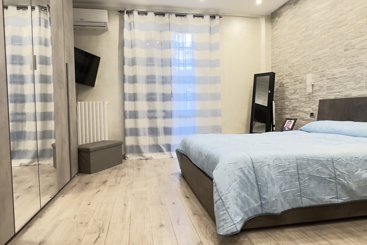 La camera da letto, spaziosa e ben distribuita, dispone di balcone esterno privato.